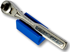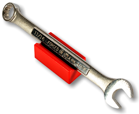 The V-Block is also new in the world of tools.  You use it to organize and keep track of wrenches, socket drives, screwdrivers and other elongated tools.  Like the SocketStick, there are labels so you can identify which tool is held by which V-Block.  Underneath, it has a rare earth, nyodium magnets as well, holding the tool to the V-Block and the V-Block to any steel surface in a toolbox, cabinet or workbench.